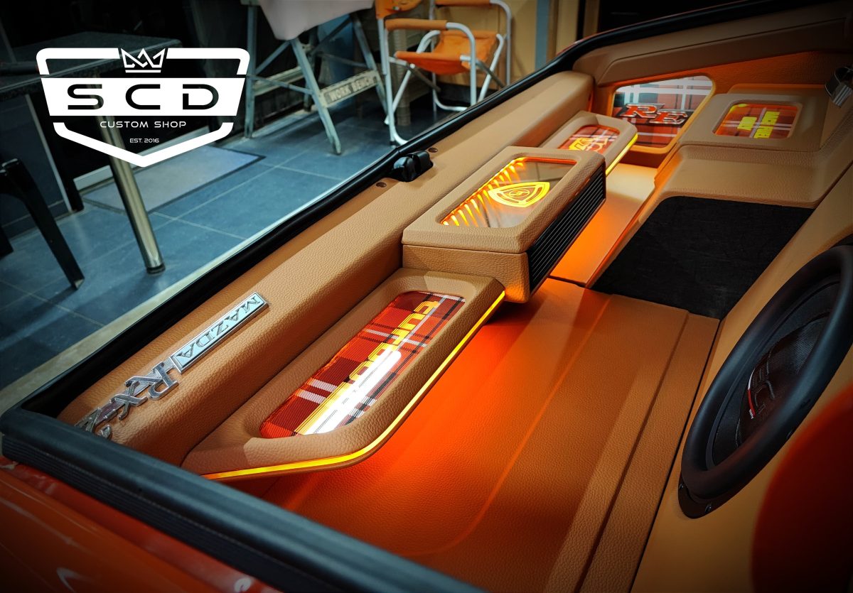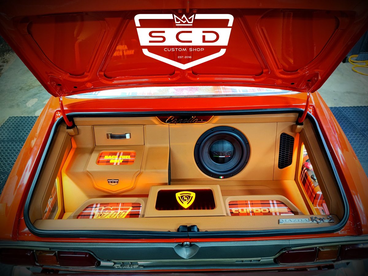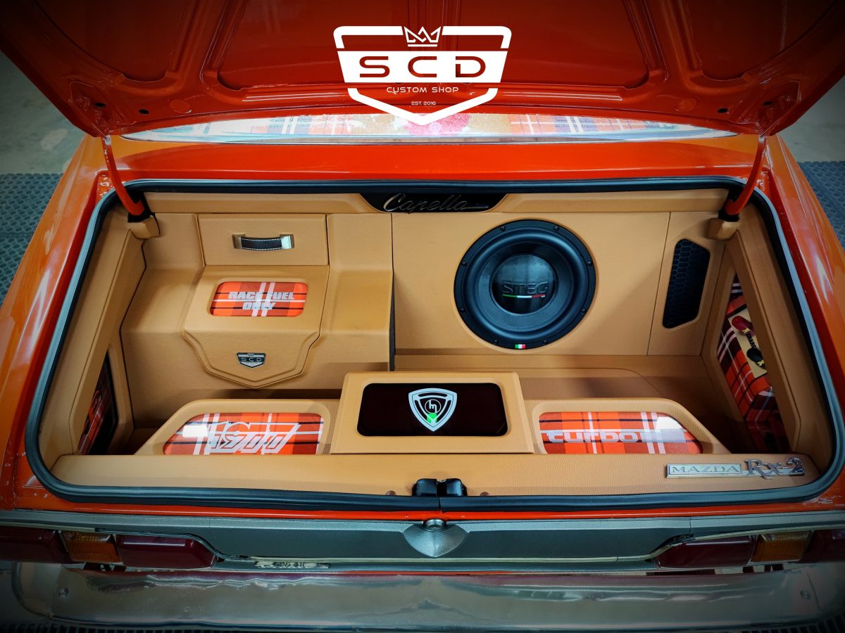 This classic Mazda Capella RX-2 received a fully bespoke audio upgrade, designed to complement the car’s heritage while delivering modern sound performance.The system is powered by an Awave 5-Channel DSP Amplifier with Hi-Res Bluetooth, paired with an Awave Digital Remote Control for precise tuning and effortless control. Up front, STEG Leo 2-Way Components provide crisp detail and balanced clarity, while a STEG ST10 Subwoofer delivers tight, controlled low-end performance.A full custom boot installation was designed and manufactured entirely in-house. All materials, finishes, and colour choices were carefully selected to suit the vehicle’s interior and custom elements, ensuring a seamless, factory-plus aesthetic that enhances both sound and visual impact.This build showcases Street Customs’ attention to detail, craftsmanship, and commitment to creating solutions that are as refined as they are powerful.